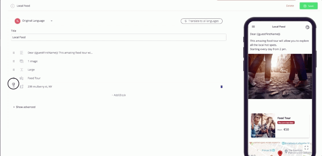 Remember to click Translate to all languages when creating content, so that the content will display in different languages according to the guest country