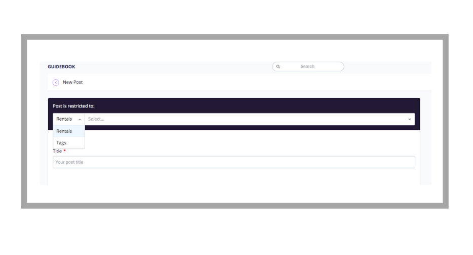 By default, the posts you create will be visible to all your rentals/rooms. You can easily restrict posts so that they appear only for specific units. For example, if you want to create a post that is only relevant for 2 rentals/rooms, you can add these rentals/rooms to the post restriction box that appears on above the post title, making sure they will only be visible for those 2 units. Restrictions can be added when creating or editing a post. Please notice you cannot use both Rentals and Tags restriction.