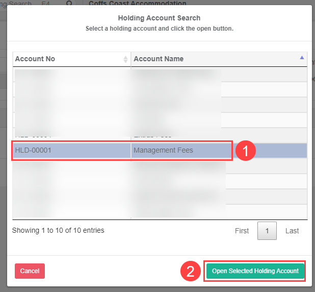 Select your Management Fees holding account and click on the Open Selected Holding Account button: