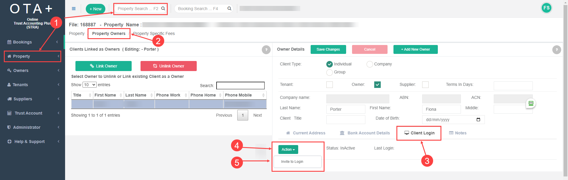 1. Go to Property > Property Search or enter the property name in to the property search bar and double-click on the relevant property.