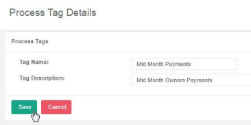 Here is an example: Most of your property owners may be happy with a payment at the end of the month, however, some property owners that have very active properties may also want a mid-month payment. Using a tag we can selectively filter only the properties included in a mid month payment to the owners.