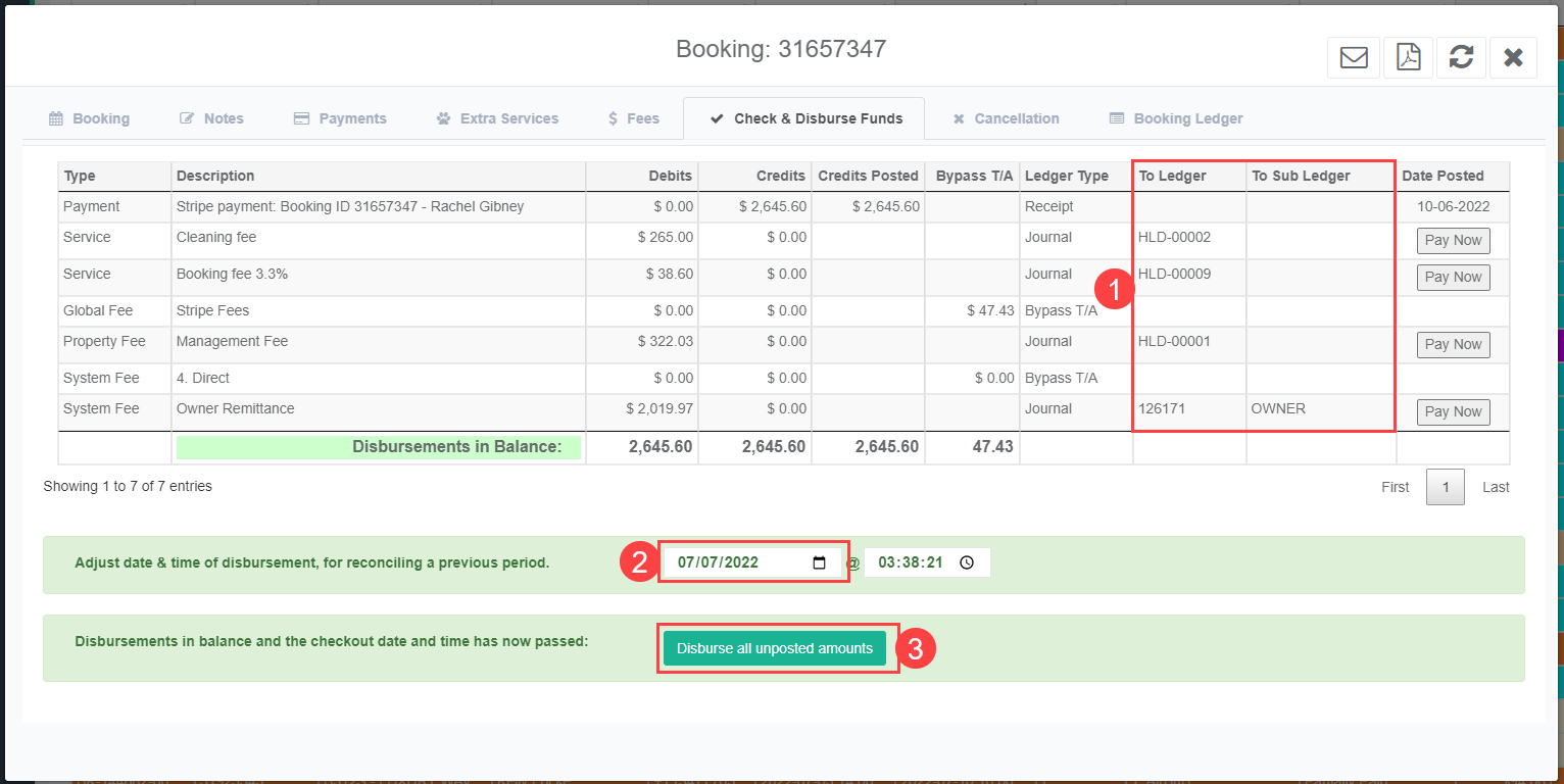 3. Click on the disburse all unposted amounts button to disburse the booking.