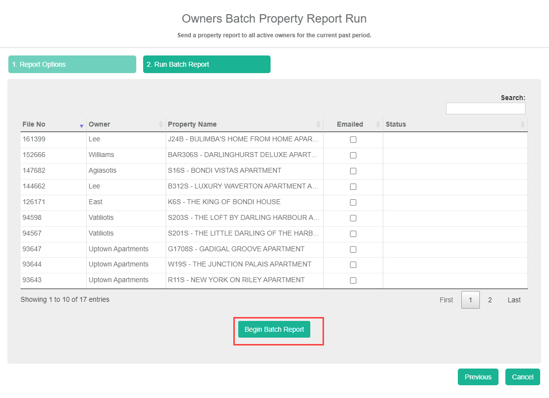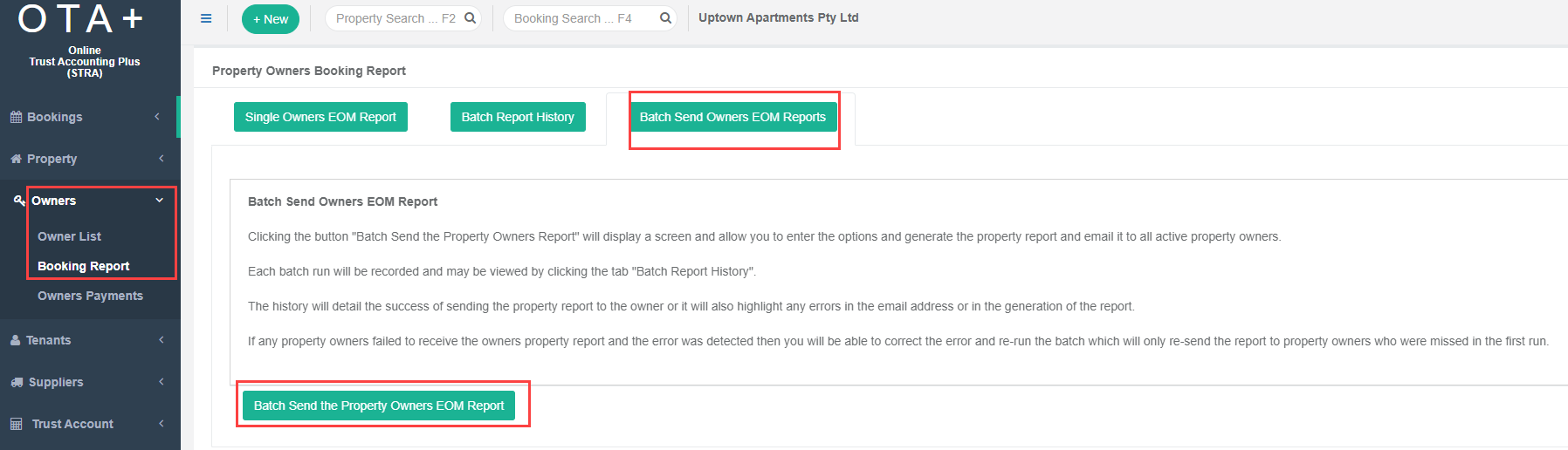 Click on the 'Batch Send Owners EOM Reports' tab and click on the 'Batch Send the Property Owners EOM Report' button.