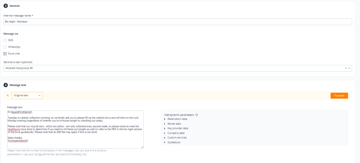 A common request for short term rentals is to be able to send rubbish bin notifications.