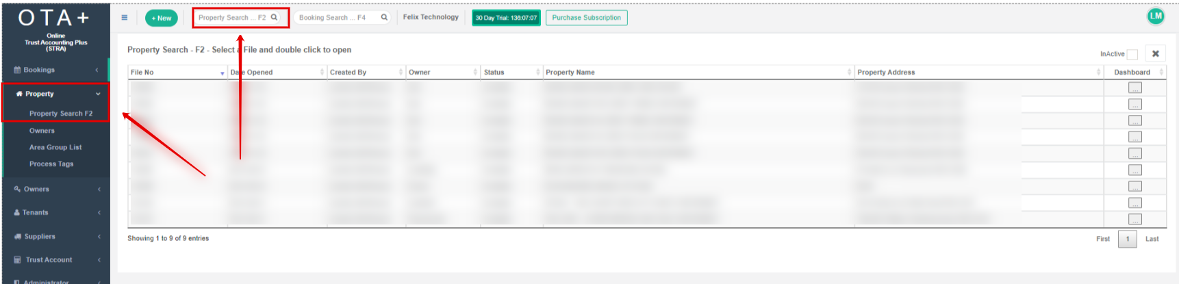 To begin, open the property settings either by using the Property Search bar up top or the Property > Property Search F2 menu option and double clicking on the correct property.