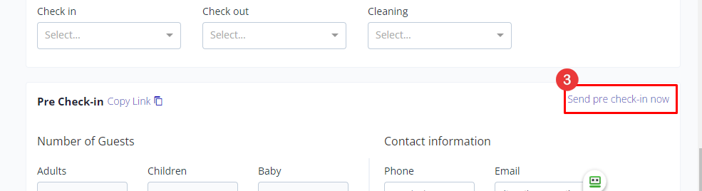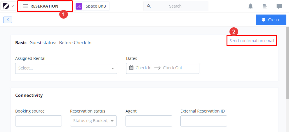 - Save, reopen the booking from the Reservations tab, then send confirmation and pre-check-in emails.