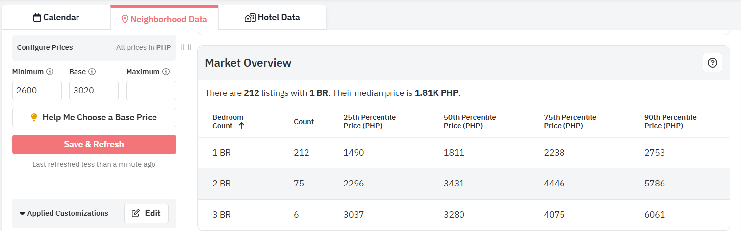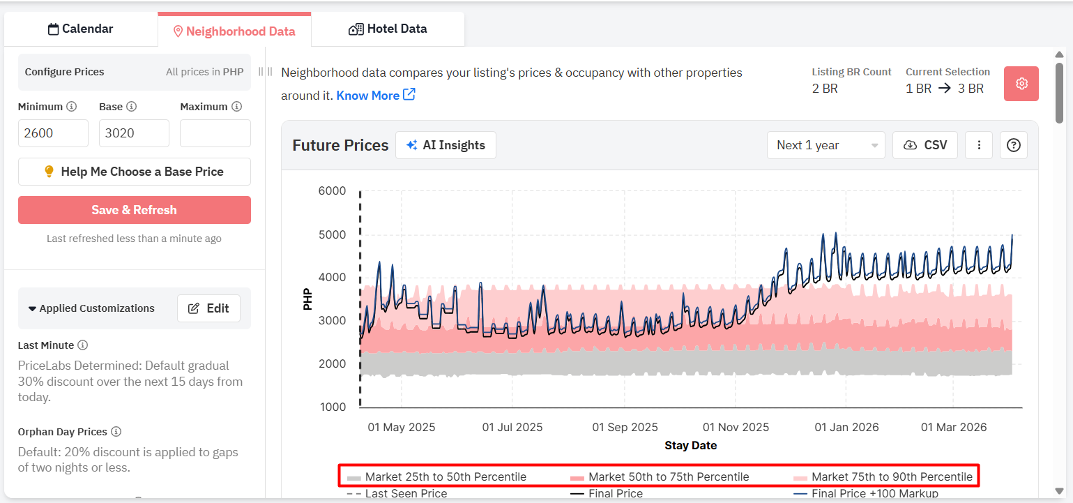 - 75th Percentile: Suitable for high-end listings or when demand is high