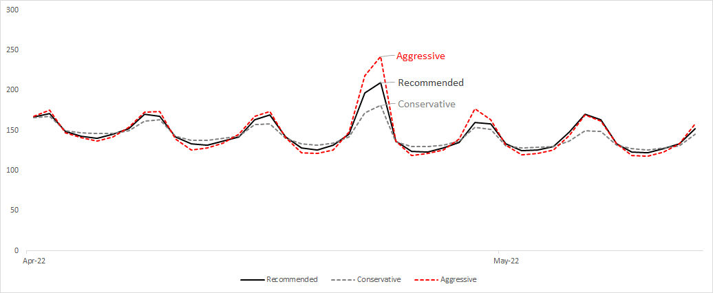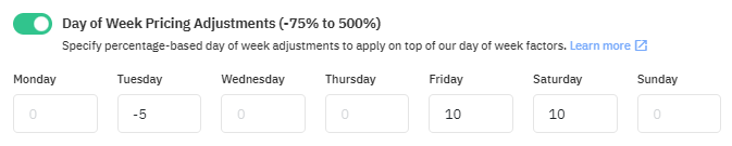 Next they apply day of week adjustments. These are also based on historic performance in a very localized area. These can also be fine-tuned using customization options on the UI.