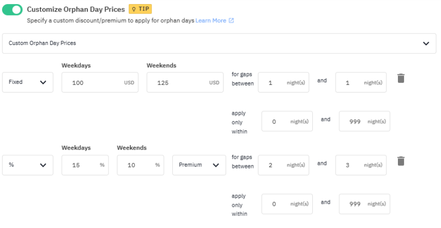 Example: If you set a 4-day minimum stay for certain dates and two bookings create a 2-day gap, the orphan day rule will still apply, allowing you to accept a booking for the gap.