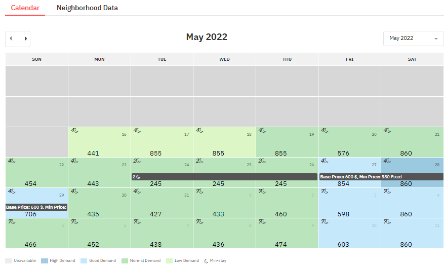 Base price is the average rate that a property manager charges across the year. All market factors, demand patterns, and customizations are applied to the base price to come to a recommended rate for a particular date. This rate will fluctuate based on the quality of your listing.