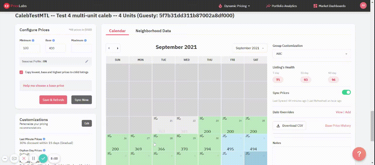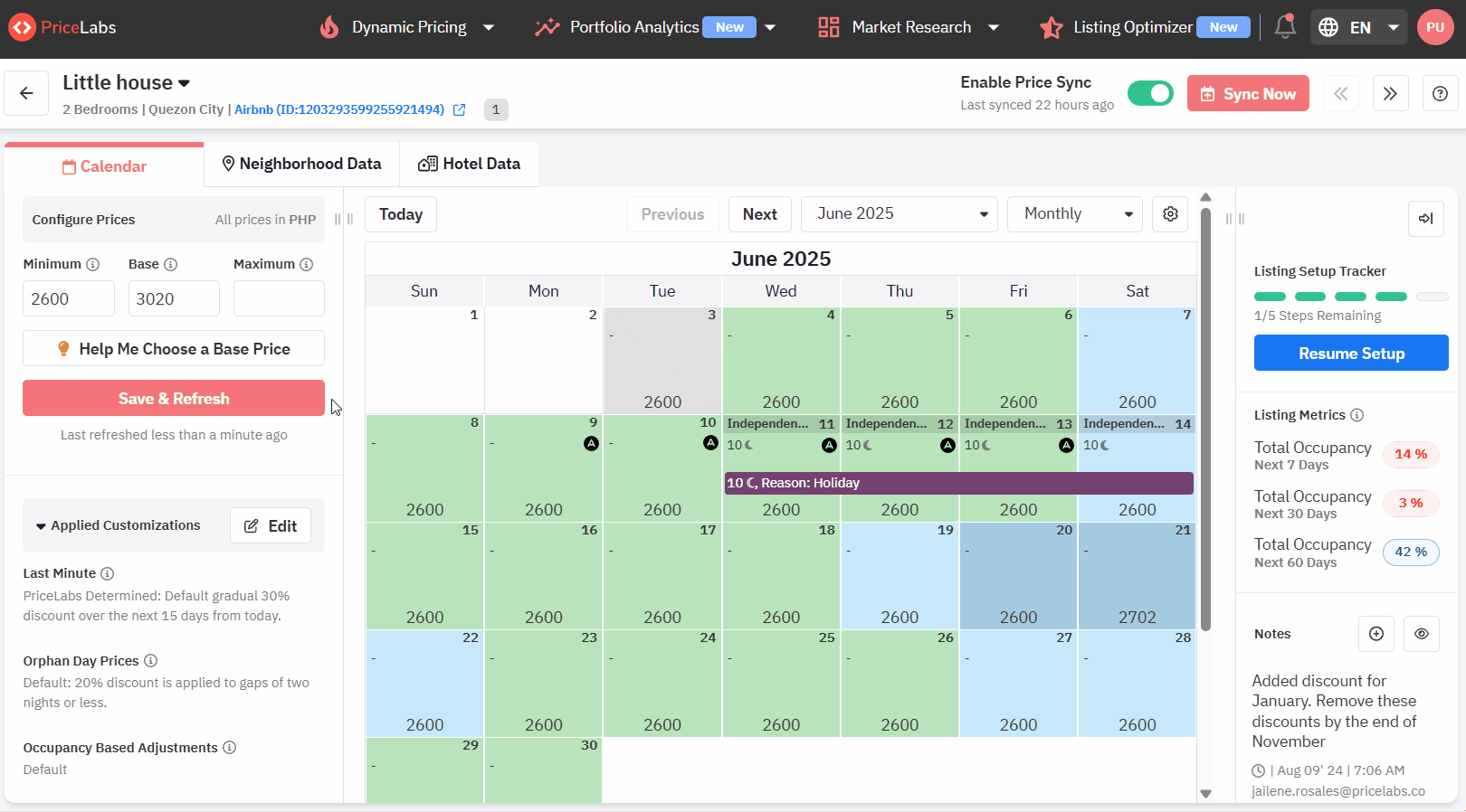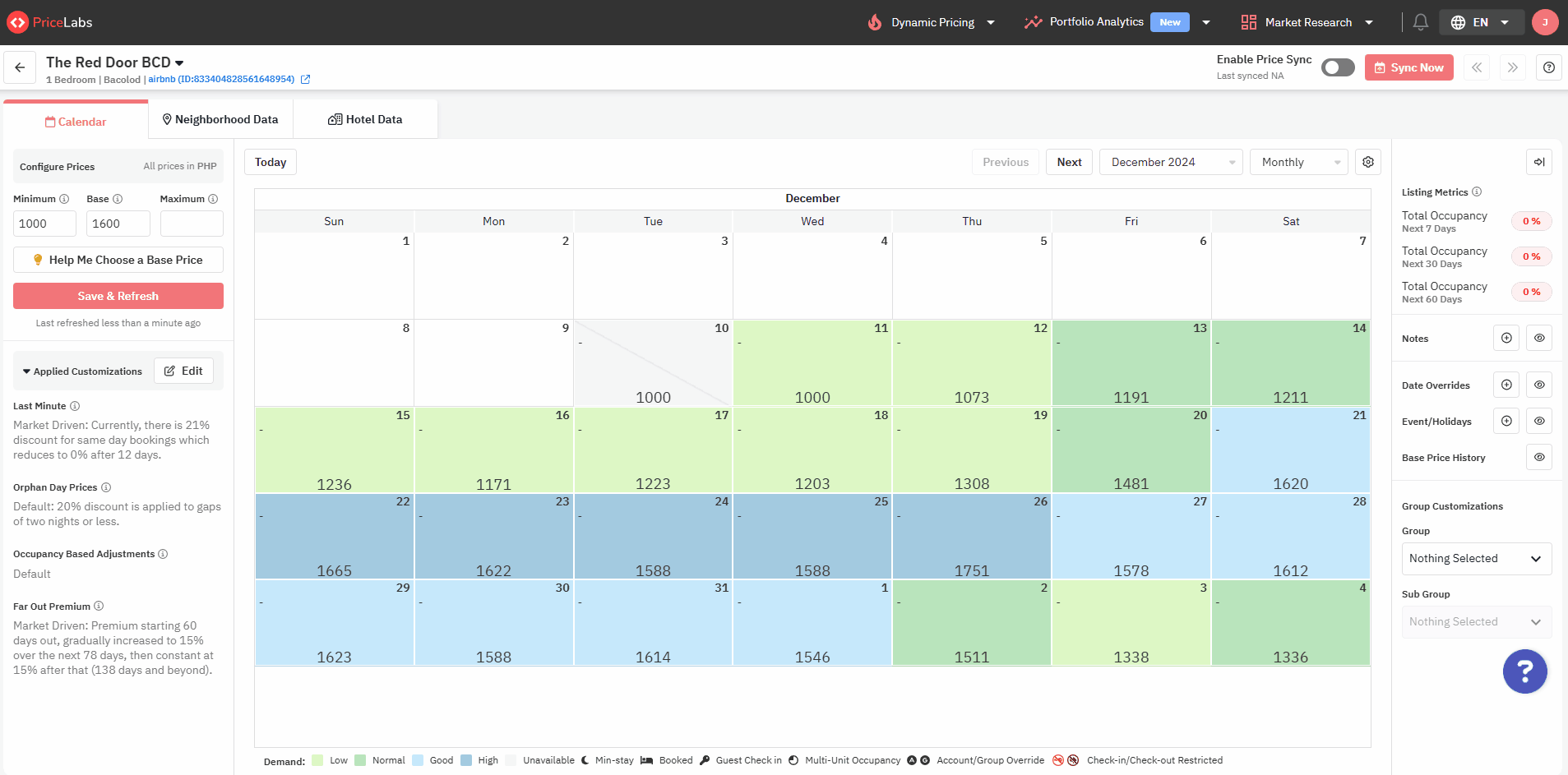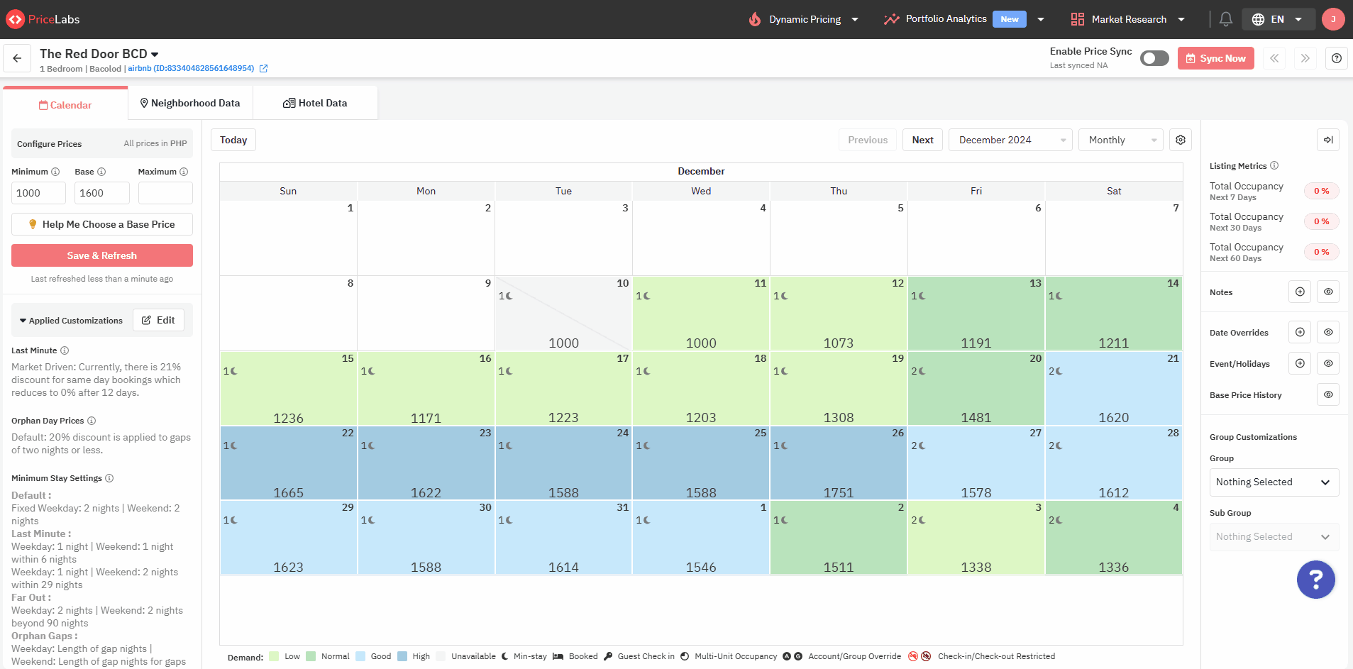 Pricelab's algorithm considers a number of factors, some inputs and settings that you can control, and our data-driven analytics layered on top of it. When you review prices for a listing for the first time.