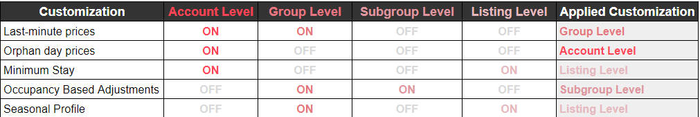 The ability to set rules at the Account, Group, Subgroup, and Listing levels is useful if you manage multiple listings, as it helps avoid setting customizations individually for each one. This guide clarifies how PriceLabs applies customizations when they exist at two or more of these levels.
