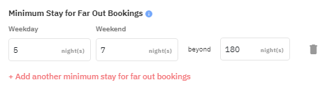 - For bookings 180+ days out, set a 5-night minimum on weekdays and 7-night minimum on weekends.