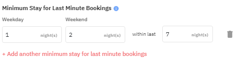 For example:Last-Minute Minimum Nights: 1 night (within 10 days)