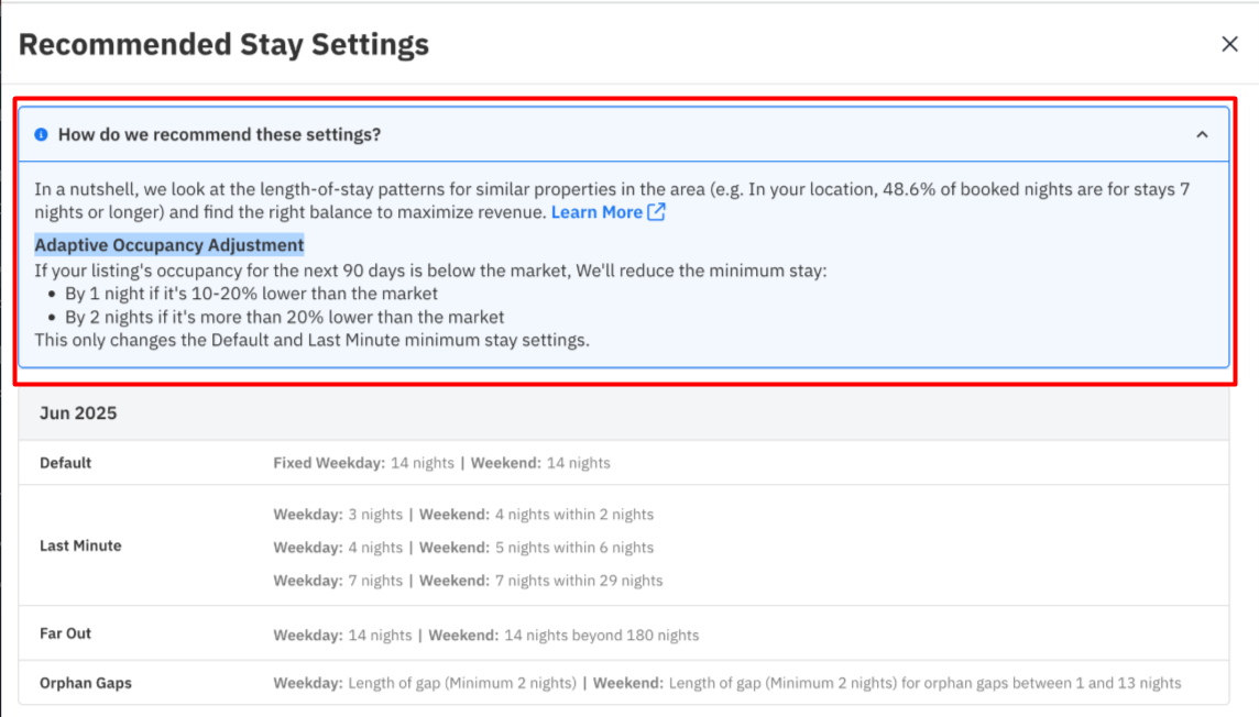 - Helps fill the calendar with longer bookings while allowing shorter stays closer to check-in dates.